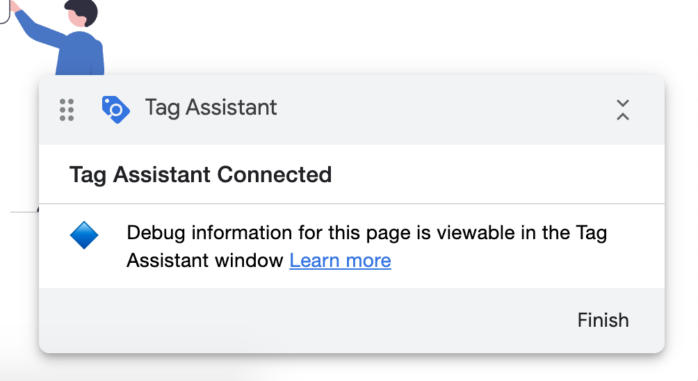 4. After you select Connect, your website should open in a new tab and display a wee modal in the bottom right corner to confirm your Tag Assistant is connected: