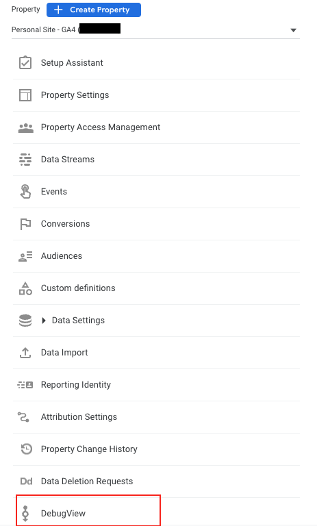 3. Once in the Admin panel, look to the middle for your Property column then scroll all the way down to find the DebugView item: