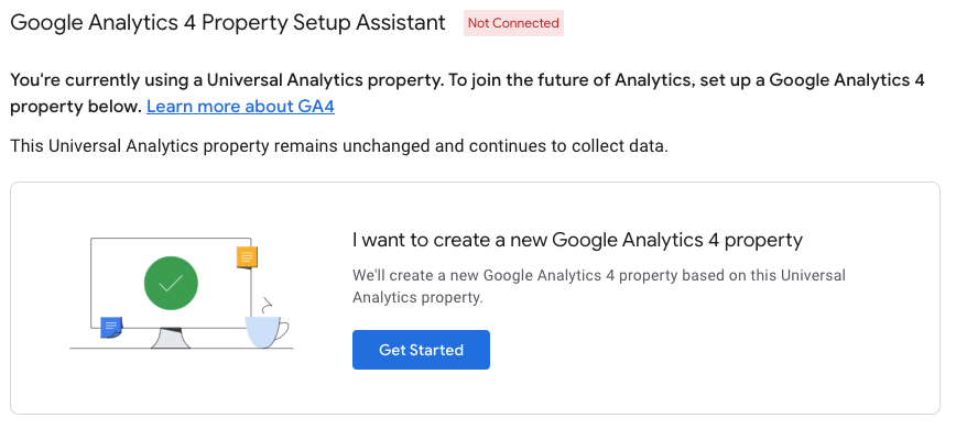 3. Make sure your current UA account is selected, then select GA4 Setup Assistant: