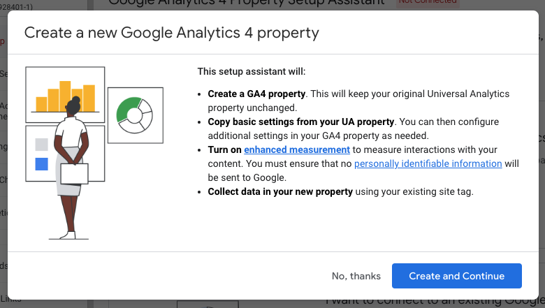 5. Select Create and Continue to create your GA4 property: