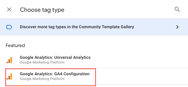 5. From the list of options, select Google Analytics: GA4 Configuration: