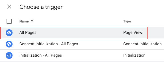 GTM listens to triggers to fire the tag. In this scenario, we’re going to tell GTM to listen for when any page loads on our website to trigger the Google Analytics 4 tag. This will successfully load GA4 on your website so you can track those views.