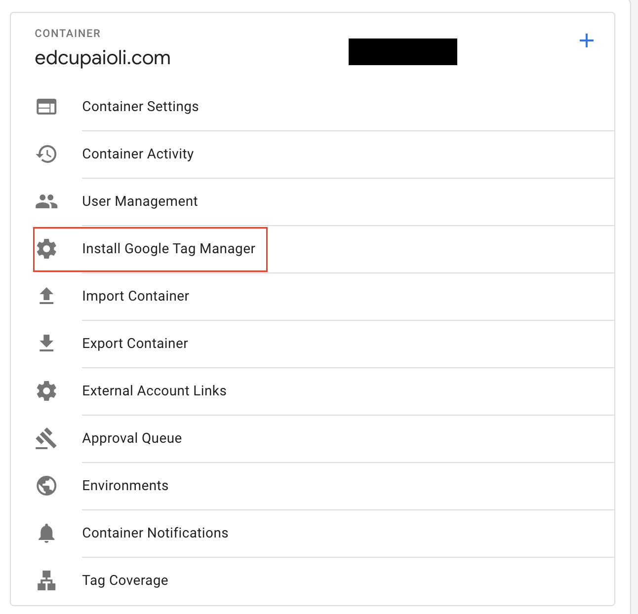 3. Select Install Google Tag Manager from the menu that appears: