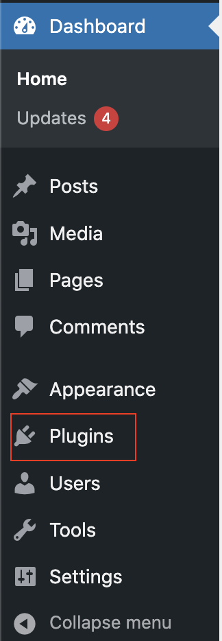 1. Go to the admin dashboard of your website and select Plugins