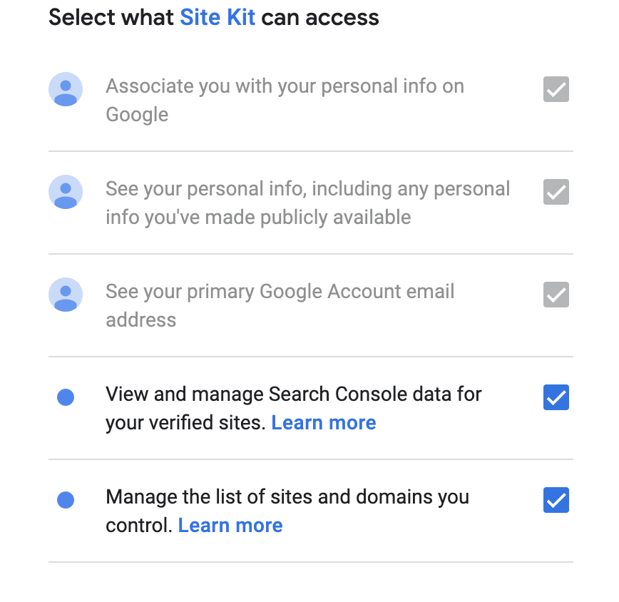 Although we just want to add our Tag Manager code, Site Kit won’t allow you to proceed with the setup without allowing them access to everything, which will prompt them to install Search Console.