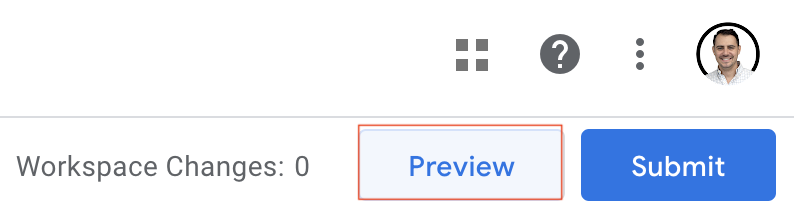 2. Select the Preview button in the upper right-hand corner to enter preview mode: