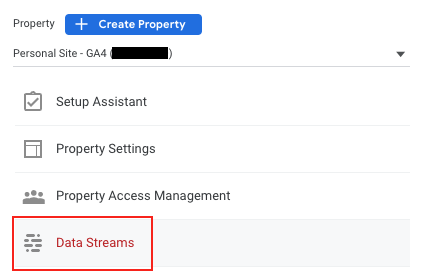7. Select Data Streams under your property: