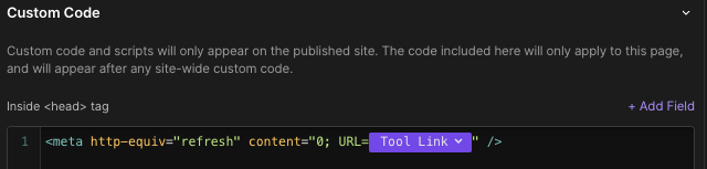 <meta http-equiv="refresh" content="0; URL=[YOUR LINK FIELD]" />
