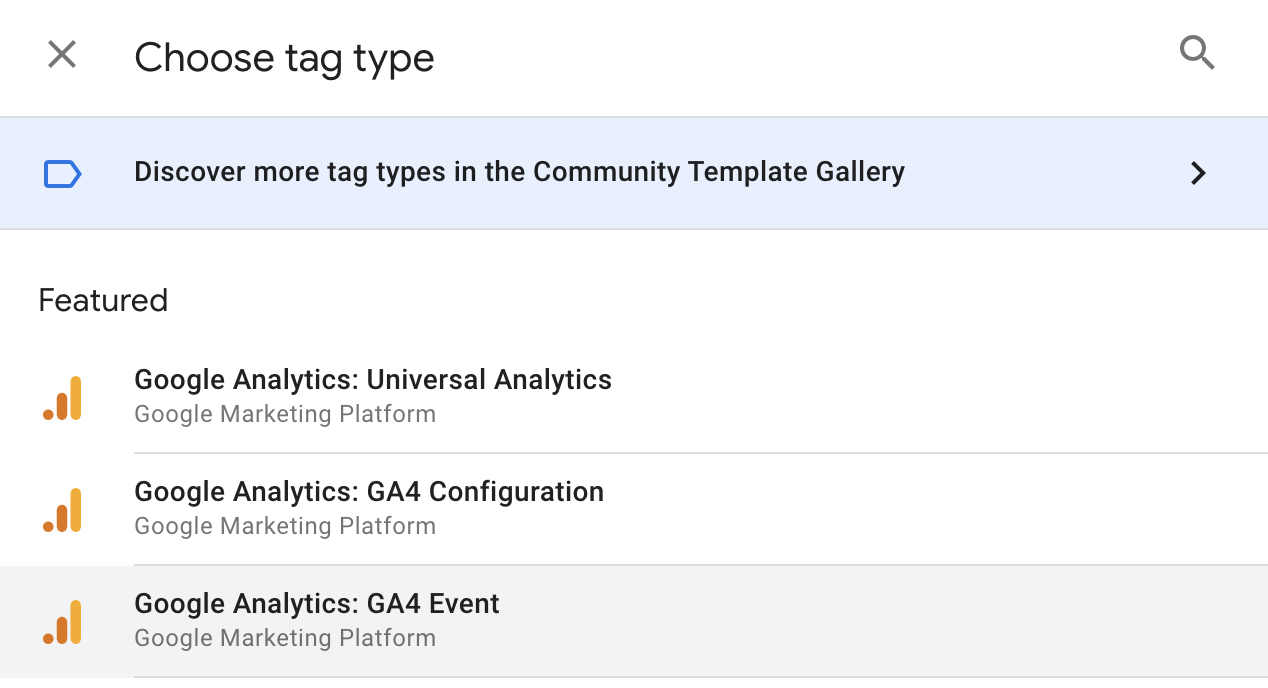 Since we want to pass different data to this tag each time (eg ‘newsletter_signup’, ‘search_submission’, etc.), we need to create a variable that will be able to pass that event name through the dataLayer onto Google Analytics.