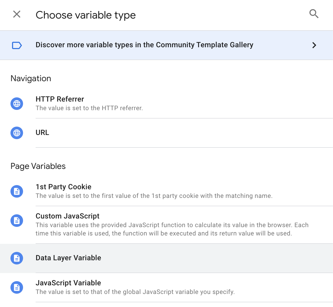 In the Choose a variable model that pops up, select the plus icon in the upper-righthand corner to add your variable, which will open another model for the Variable Configuration.