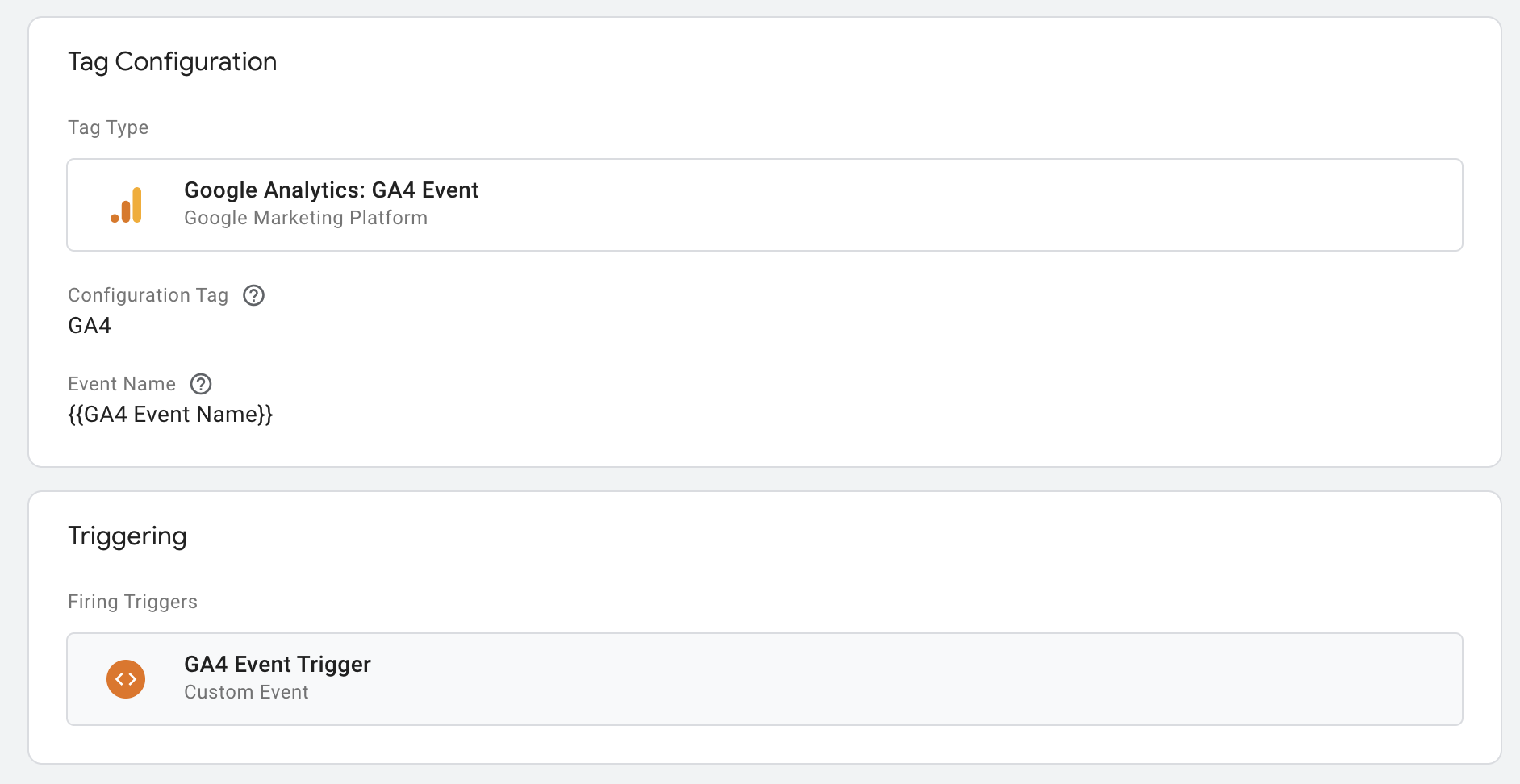 event is that Custom Event firing trigger and ga4_event was the event name we told GTM to listen for. We are telling GTM, “hey there was an event, a ga4_event to be specific” and we have the tag set to trigger when it hears that.