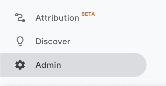 First, open your Analytics Property then navigate to the admin section by selecting the gear icon in the bottom left corner: