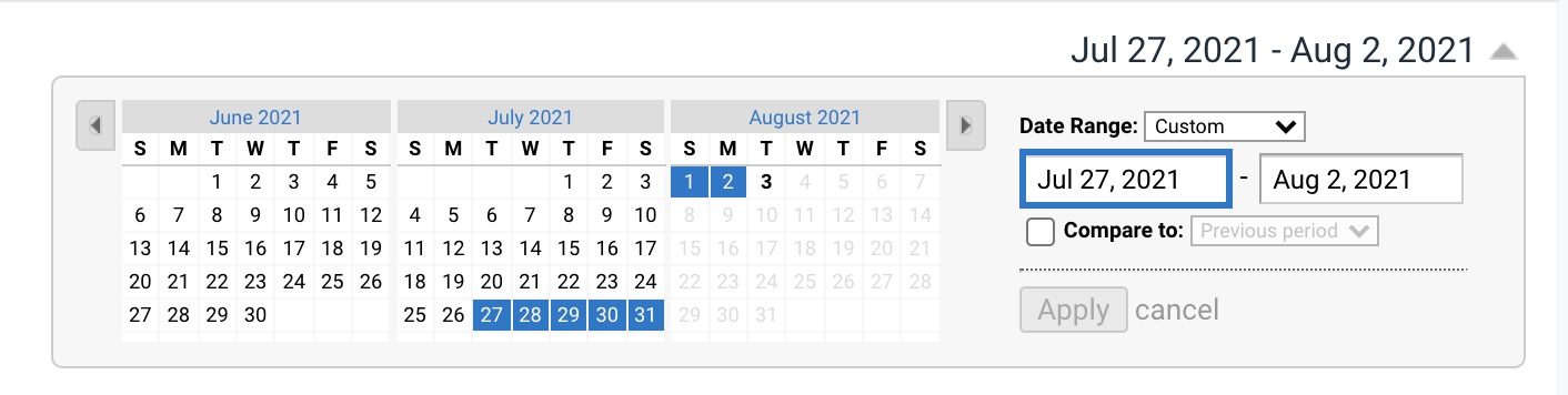 You can change the date range by selecting the date range in the top-right corner: