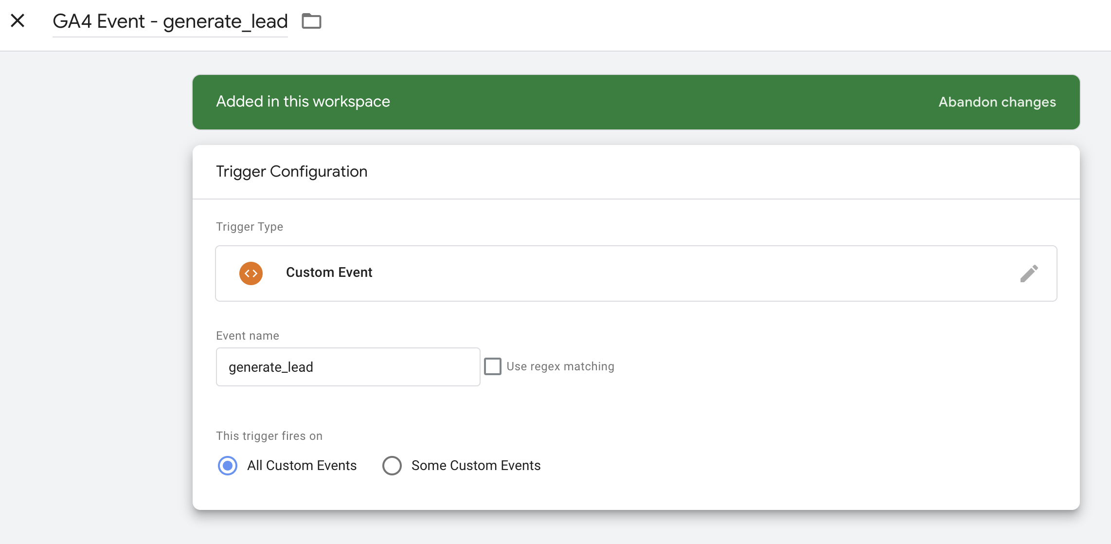 - Add generate_lead to the Event name input, then hit save and you’re done.