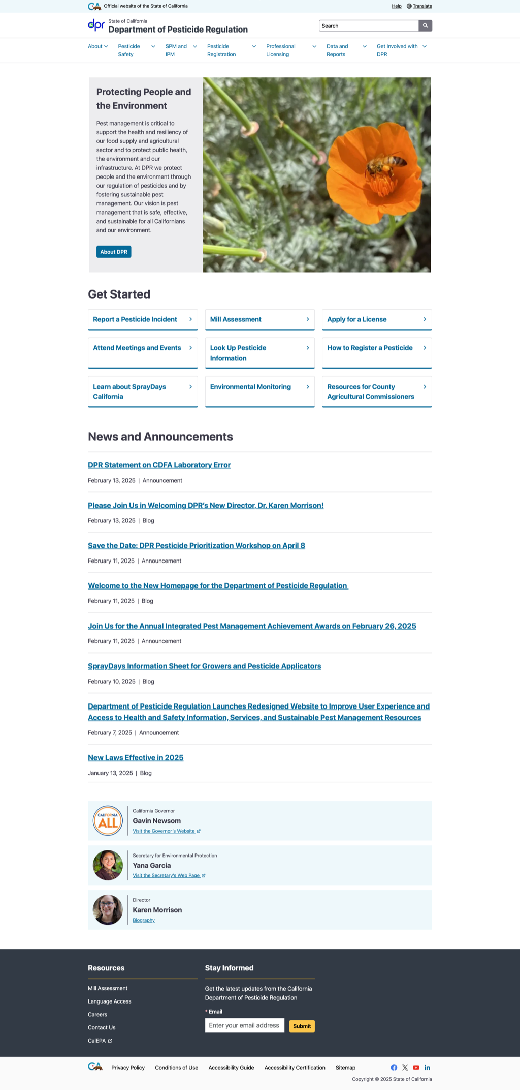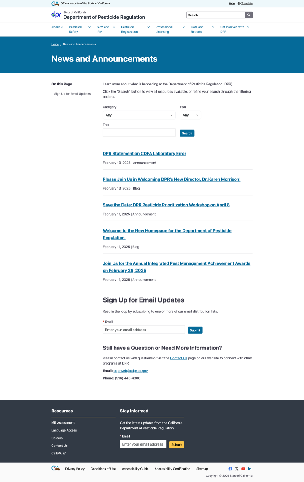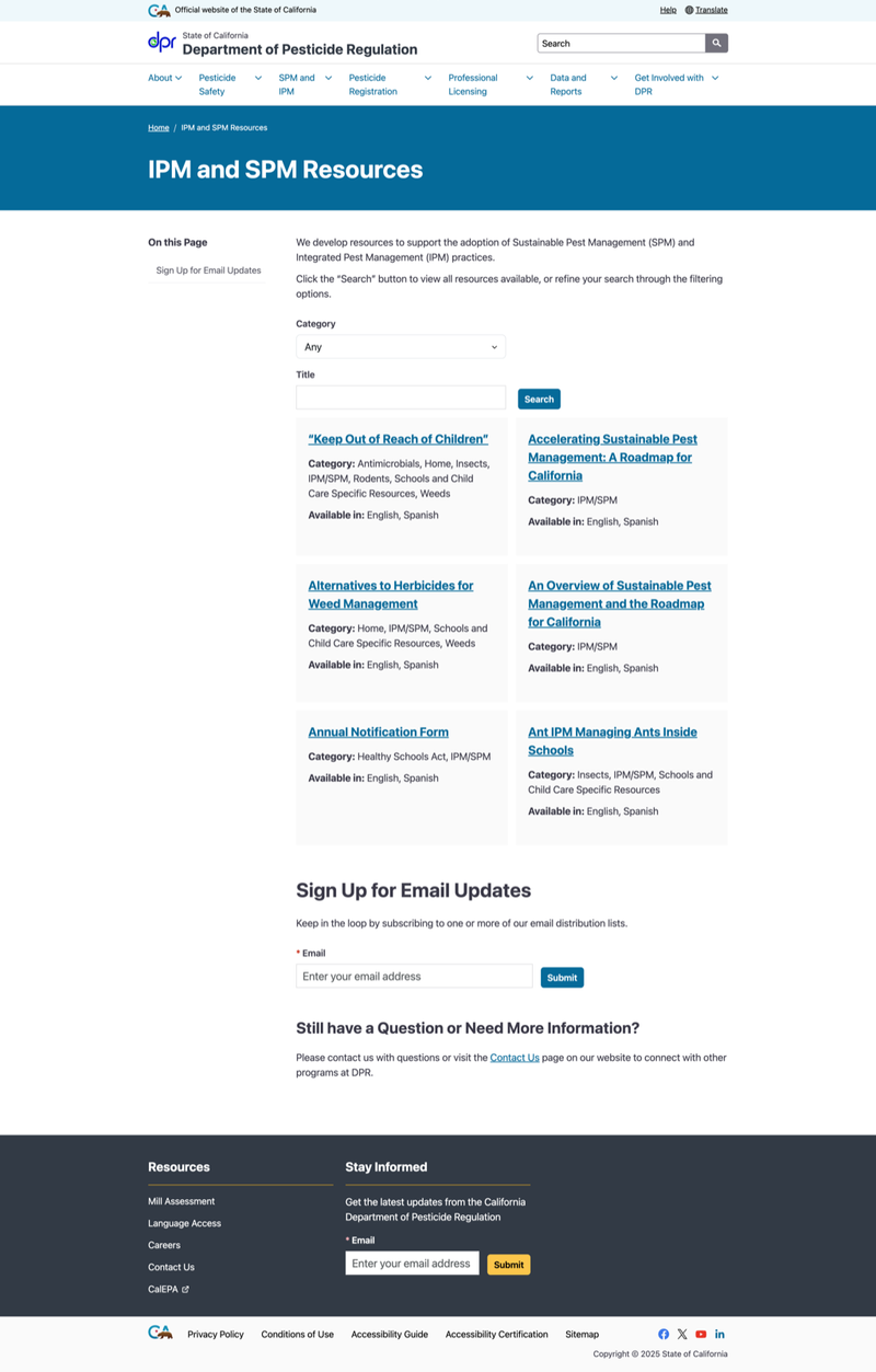 Ben gave me the requirements of building a Wordpress site on Timber, use ACF for the fields and post types, and implement Fuze.js for the post filters. I went into a code hole for 6 months and emerged with this great new site for the CA Department of Pesticide Regulation.