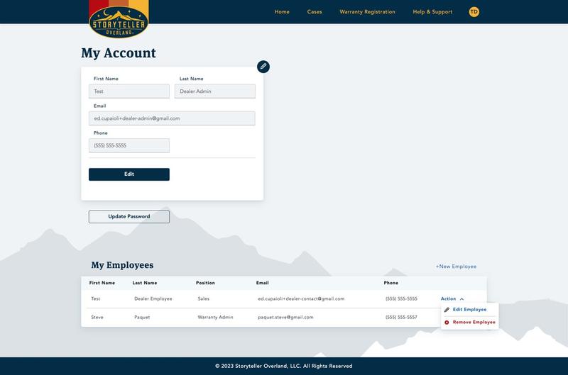 You won’t be able to get past the login or signup screens, but trust me when I say there’s tons of functionality packed into this frontend. The initial challenge was to find a way to connect people in the Netsuite database without given them a seat in Netsuite which would expose internal company details. I worked with some really great Netsuite backend engineers to devise a system where we could connect an email with a record and create an auth account with a third-party integration, Netlify Identity, that would handle logging in and signing up. Once we figured that out, it was off to the races. Now owners and dealers of Storyteller Overland vans are able to reach out to support, respond to open cases, register warranties, manage dealership staff, and transfer their vans. Previously they could only submit cases and register warranties through a buggy hubspot form that would occasionally bungle the data.