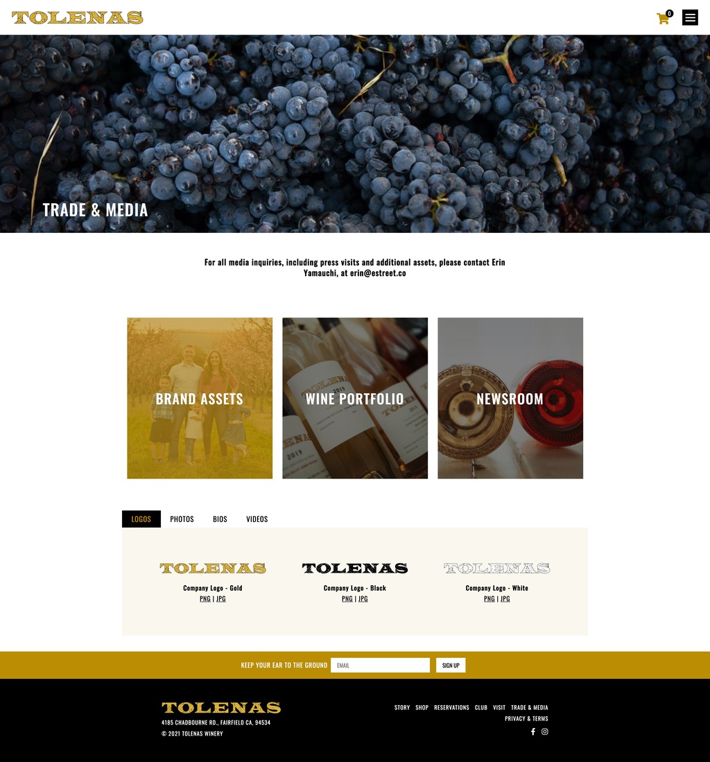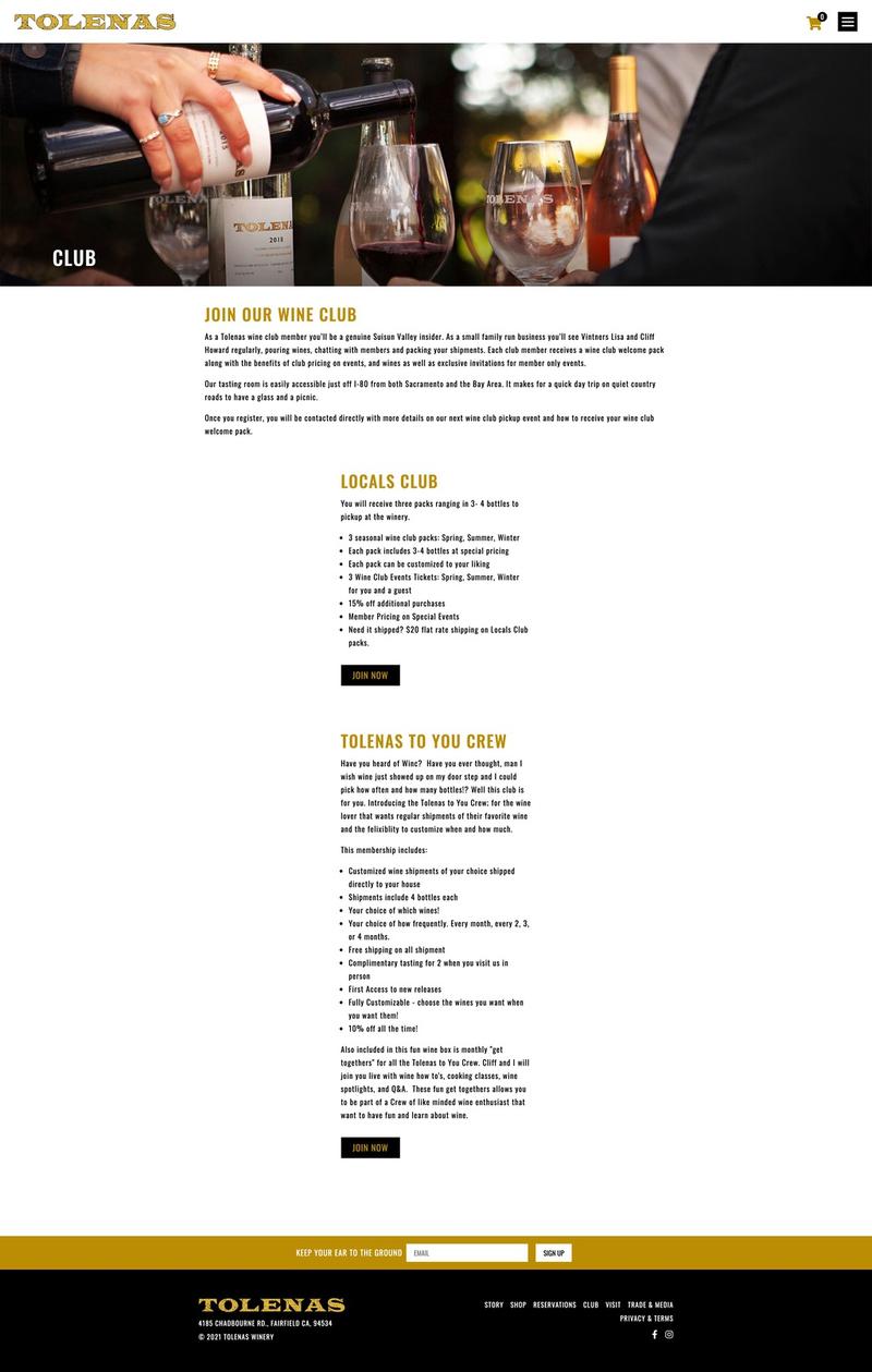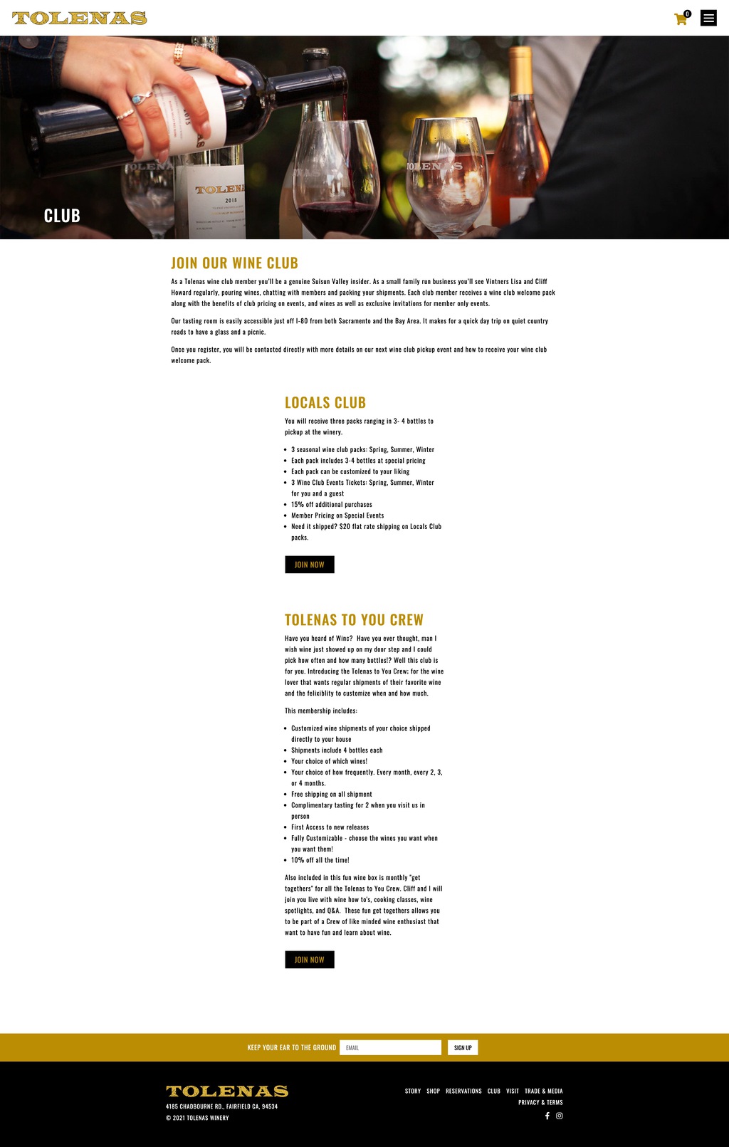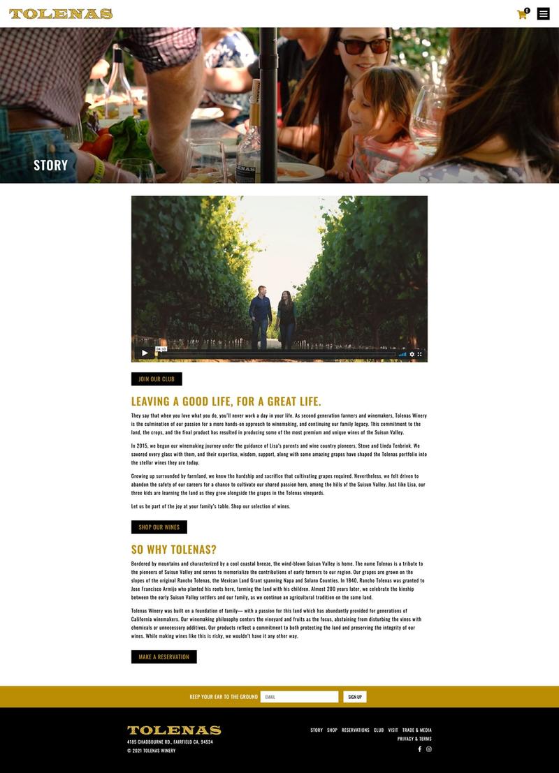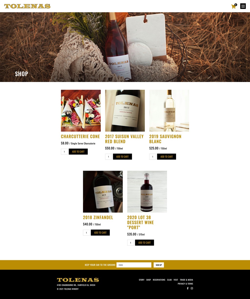 Though this site was designed before I arrived at eStreet.co, the developers they outsourced built a buggy website that wasn’t even connected to Tolenas Winery’s e-commerce provider! I didn’t fret, I created a fast Jekyll based website with a forestry CMS and seamlessly integrated Commerce 7 for simple wine buying. Along with having a great website, Tolenas has some great wine; check them out.